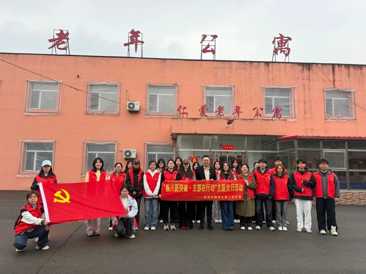 为深入学习贯彻习近平总书记关于东北、辽宁振兴发展的重要讲话和重要指示精神,锚定“十五五”开局目标任务,大力弘扬中华民族尊老敬老的传统美德与新时代雷锋精神。近日,管理学院学生第三党支部走进浑南仁爱老年公寓,开展“振兴新突破 支部在行动”主题党日活动,以敬老爱老的实际行动践行初心使命,在服务群众中锤炼党性修养,为辽宁全面振兴新突破贡献青春力量。