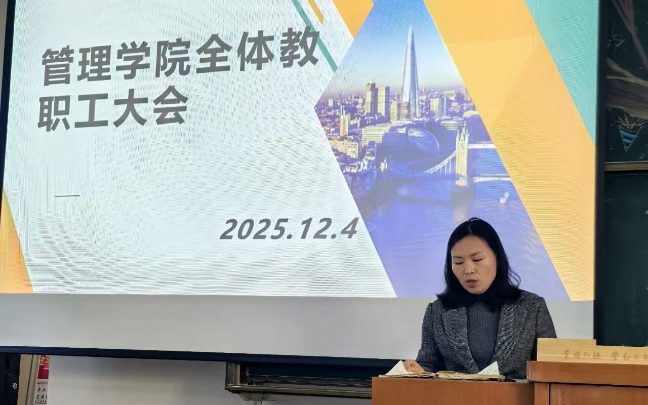 为进一步统一思想、明确方向,推动学院教育教学高质量发展,12月4日,管理学院在业精楼 C208 召开全院教工大会。会议由院长刘阳主持。